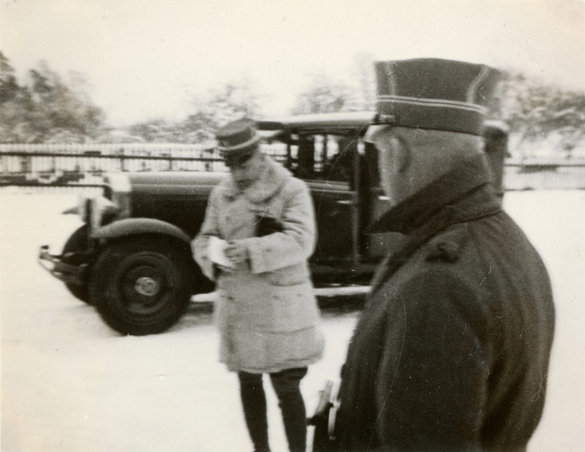 Titel: Text i fotoalbum: "Taktiskt frysning Säby 1933. Ledaren anländer".