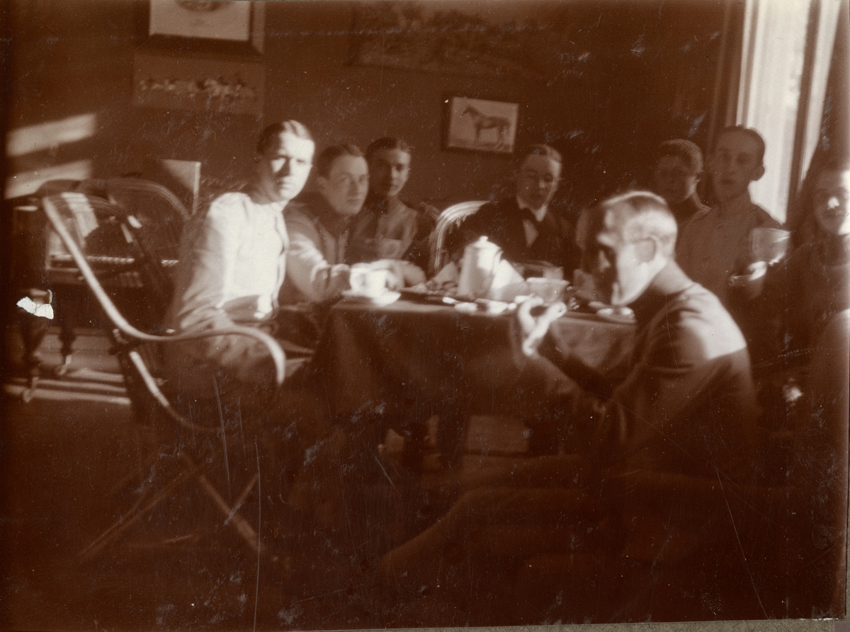 Titel: Text i fotoalbum: "Fälttjänstöfningarna vid Östersund. Lunchslummer".