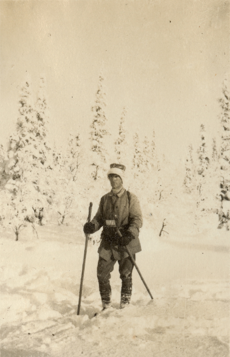 Titel: Text i fotoalbum: "Aspirantskolans vinterövningar i Björnänge febr.-mars 1926. Chefen".
