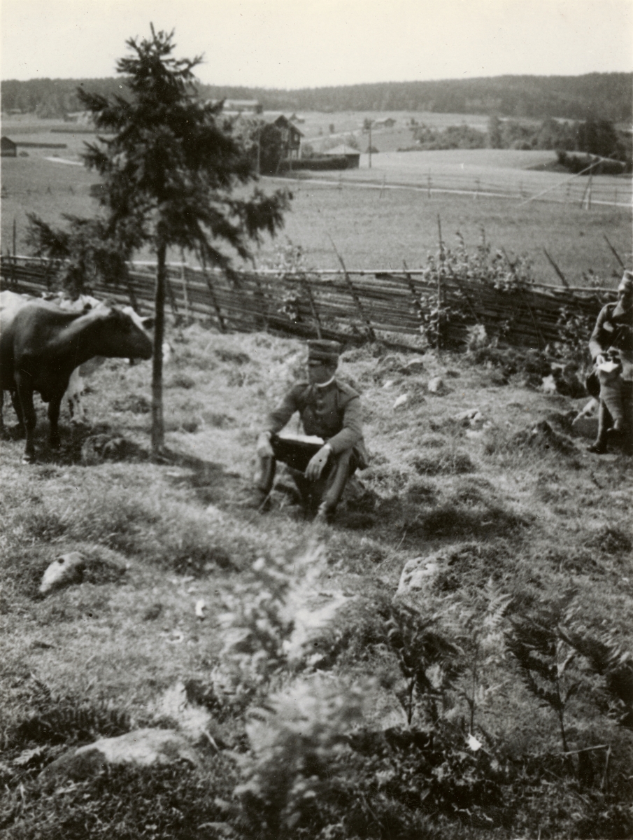 Text i fotoalbum: "AIHS hk fältkörningen sommaren 1934. Kon åhör Rulles kritik".