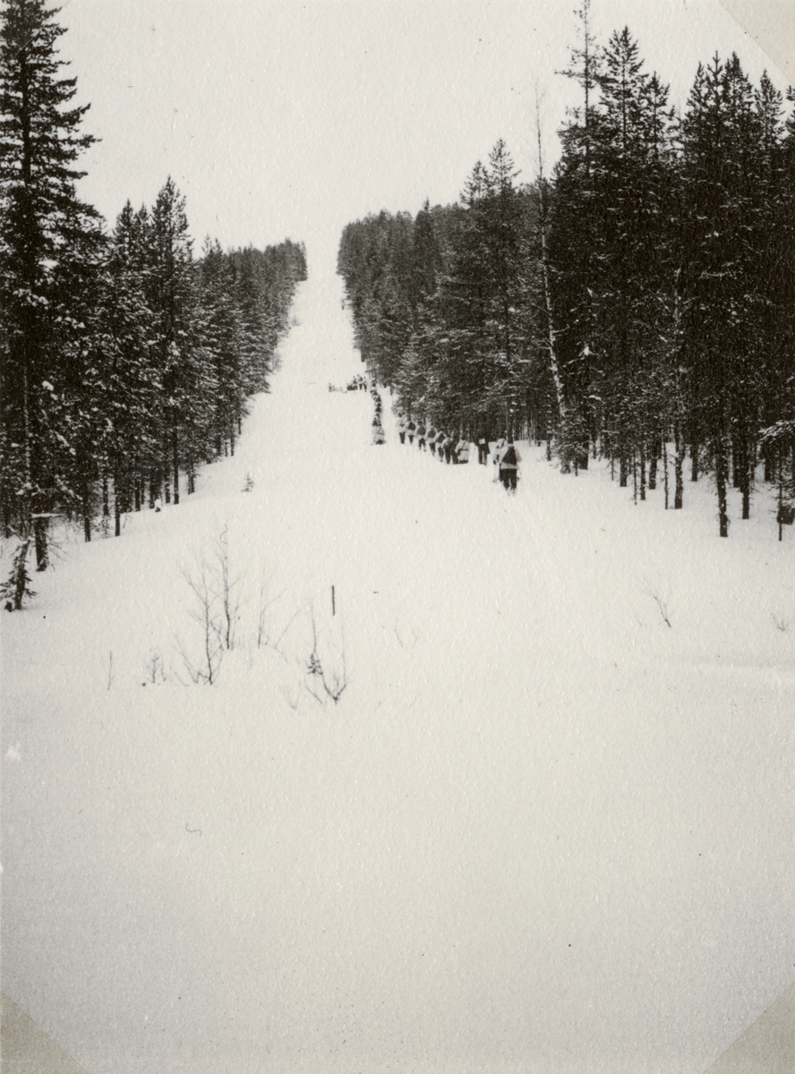 Text i fotoalbum: "AIHS vinterfältövning vid Sälen 15.-22. febr. 1942. Rekognosering i gränsgatan till Norge 16/2".