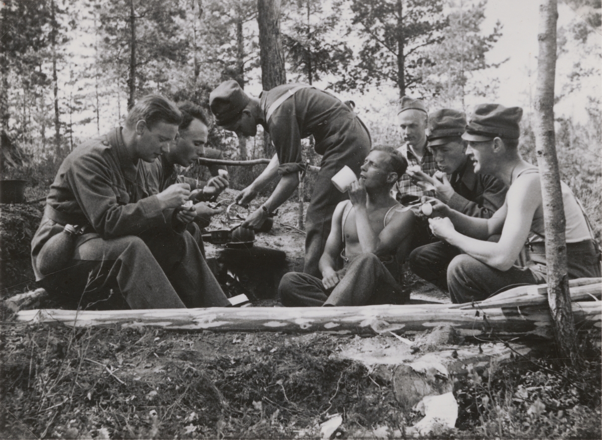 Titel: Text i fotoalbum: "4:e gr. samlad vid spisen".