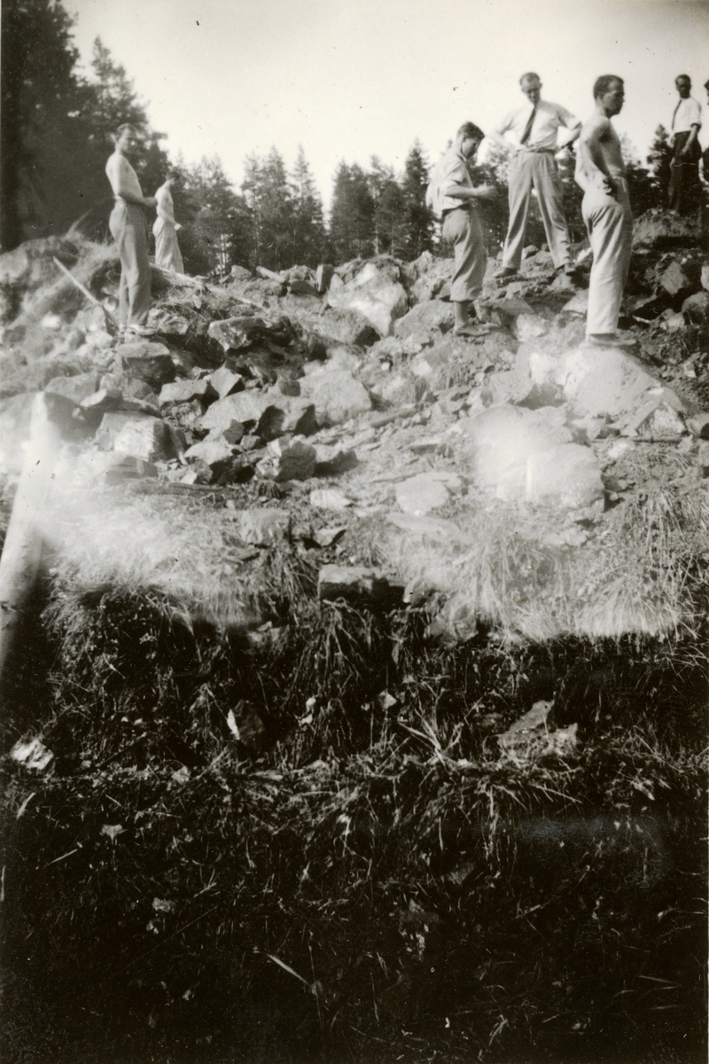 Text i fotoalbum: "3-20 juni 1937 deltog jag i en sprängkurs vid Gyttorp, där vi fick lära oss allt om sprängmedels handhavande. Sprängning av källargrunden.".