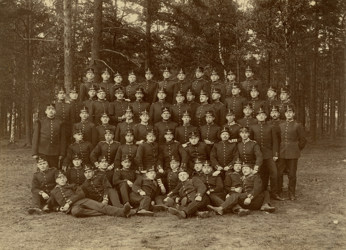 Grupporträtt av deltagarna vid Underbefälsskolan, Karlsborg 1894.
