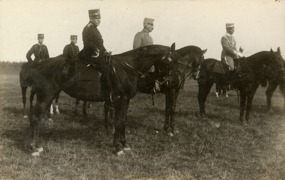Text i fotoalbum: Kommendanten åtföljer H. Maj:t Konungens stab vid defileringen den 1. september 1914.