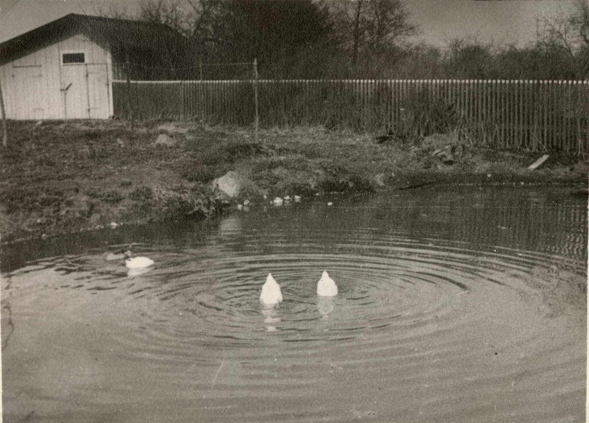 Titel: Text i fotoalbum: "AIHS fältövningar i Norrtälje 26-30 april 1938. Två ankor som sökte vårmat i en pöl."