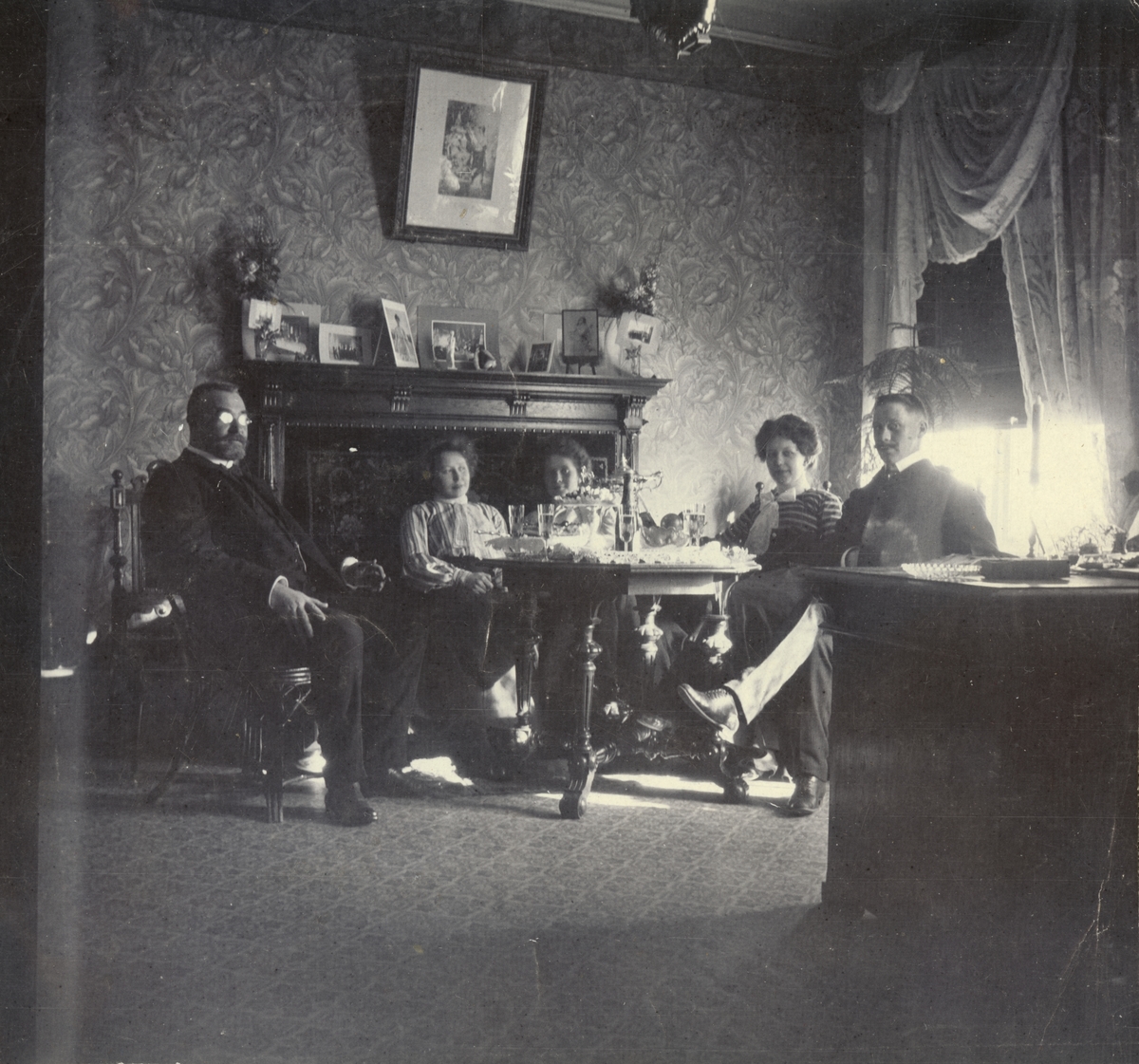 Titel: Text i fotoalbum: "Champagnefest hos bankdirektören Holmgren 1904."