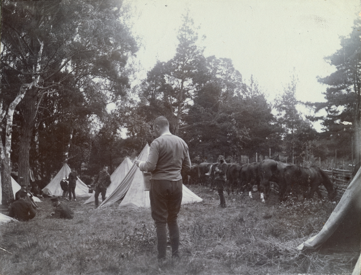 Titel: Text i fotoalbum: "Ränneslätt K 4 Kav. aspirantskola 1900". Tältläger.