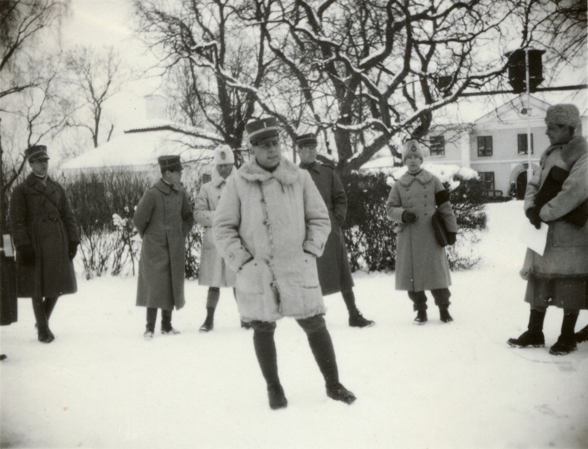 Titel: Text i fotoalbum: "Taktiskt frysning Säby 1933. Kritik med mer eller mindre intresserade åskådare".
