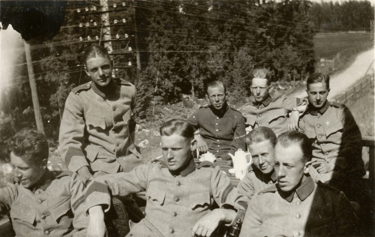 Text i fotoalbum: "Efter asp.skolans slut placerades vi på trupp på Ing 1 juni - sept 1926. I juni foro vi till Laxön. På café Solbacken".
