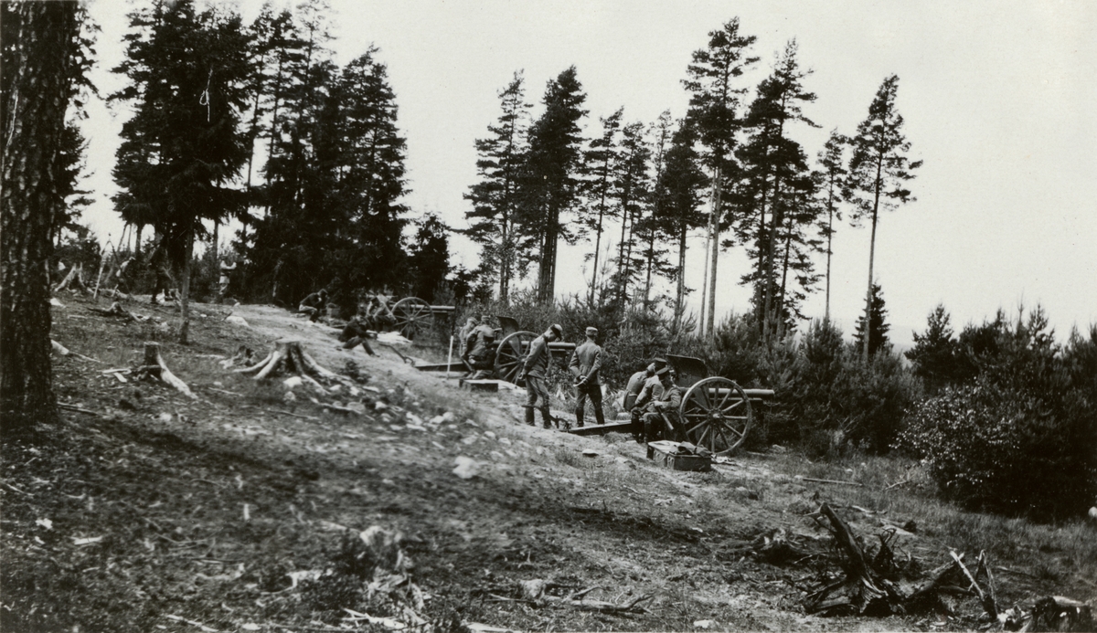 Text i fotoalbum: "Krigsskolan 10 okt 1926 - 31 dec 1927. Skillingaryd - Varberg, sommaren 1927. 7 cm batt i eldgivning".