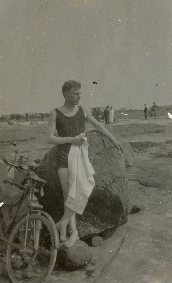 Titel: Text i fotoalbum: "Fritiden i Varberg. Vid Apelviken".