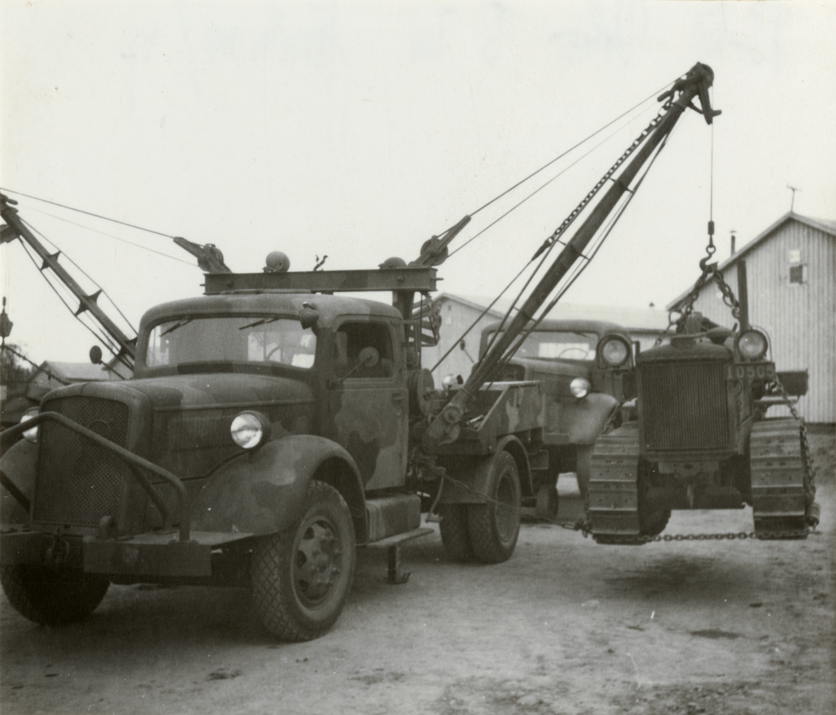 Titel: Text i fotoalbum: "Bärningsbil (försök) med Tranås-kran."