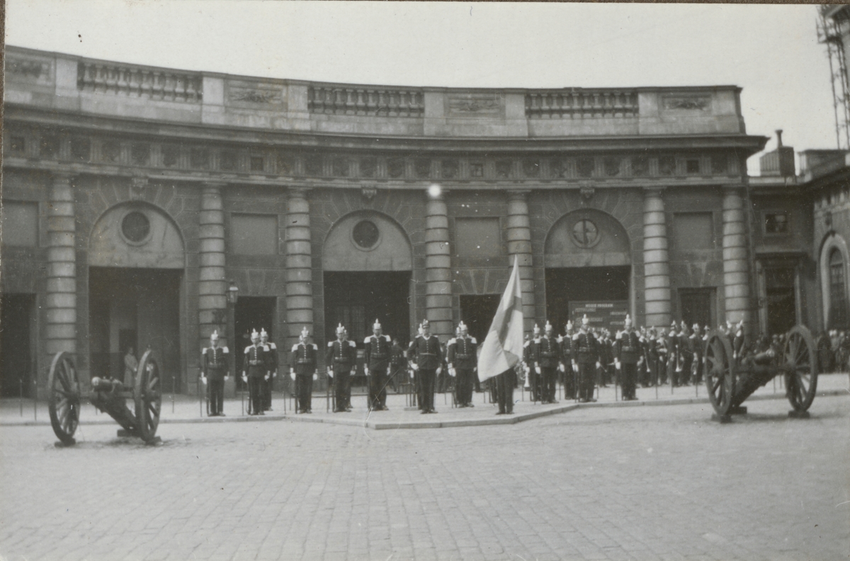 Högvakt på kungliga slottet i Stockholm. Göta livgardes stridsvagnsbataljon, 1928-1930, 1:a kursen.