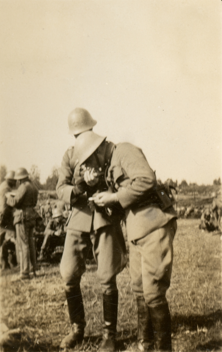 Titel: Text i fotoalbum: "Manöver. Rast vid Höreda kyrka".