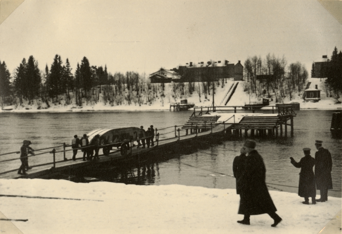 Text i fotoalbum: "Studieresa med general Alm till Finland 1.-12. mars 1939. Lätt bromateriel demonstreras."