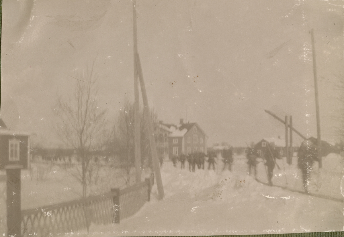 Titel: Text i fotoalbum: "Manöver i trakten af Piteå vintern 1906. På marsch."