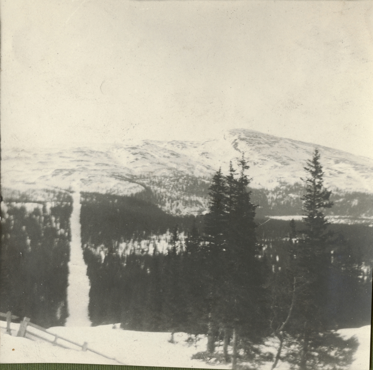 Titel: Text i fotoalbum: "Kungl. Krigshögskolans vinterfältövningar 1910. Riksgränsen".