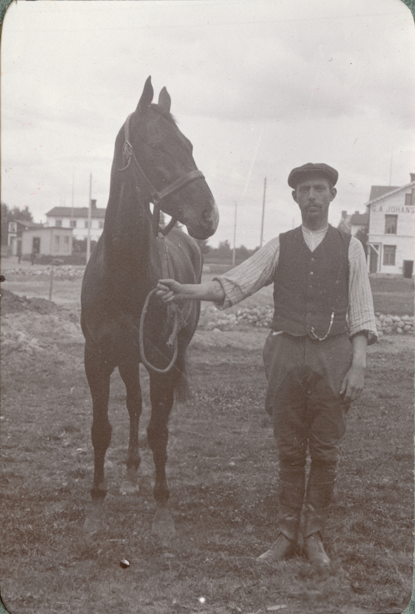 Titel: Häst och hästskötare från Kronprinsens husarregemente K 7.