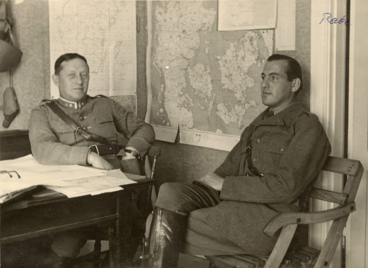 Text i fotoalbum: "Beredskapstjänst april-okt 1940 vid Fältpost. Häger, Rabe".