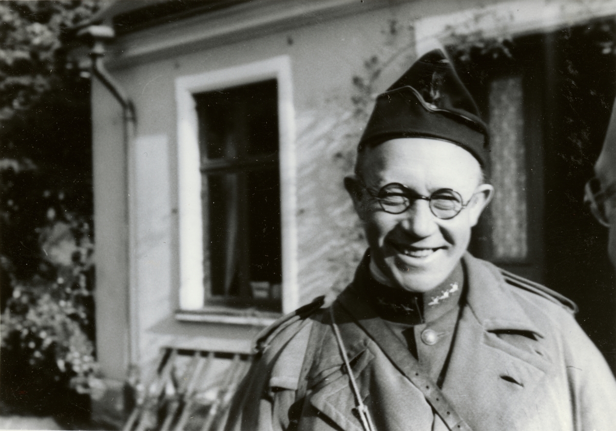 Text i fotoalbum: "1935. Okt. Skånemanövern. Två fältintendenter; Granlund, I 16 och Humble, I 17, vid Livsm.magasinet i Ystad".