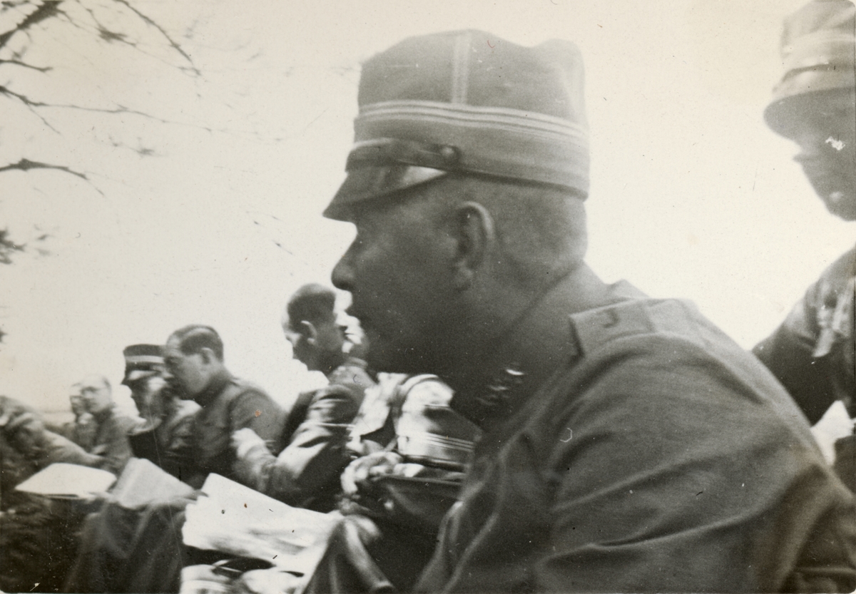 Titel: Text i fotoalbum: "1936 juni. Intendentur-fältövningen i Röstånga. Stabsövning i terräng. Åstrand".