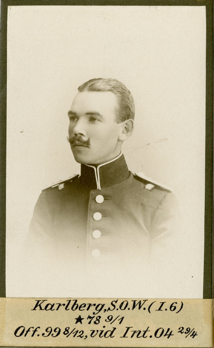 Porträtt av Sven Oskar Wilhelm Karlberg, Officer vid Västgöta regemente I 6 och Intendenturkåren.
