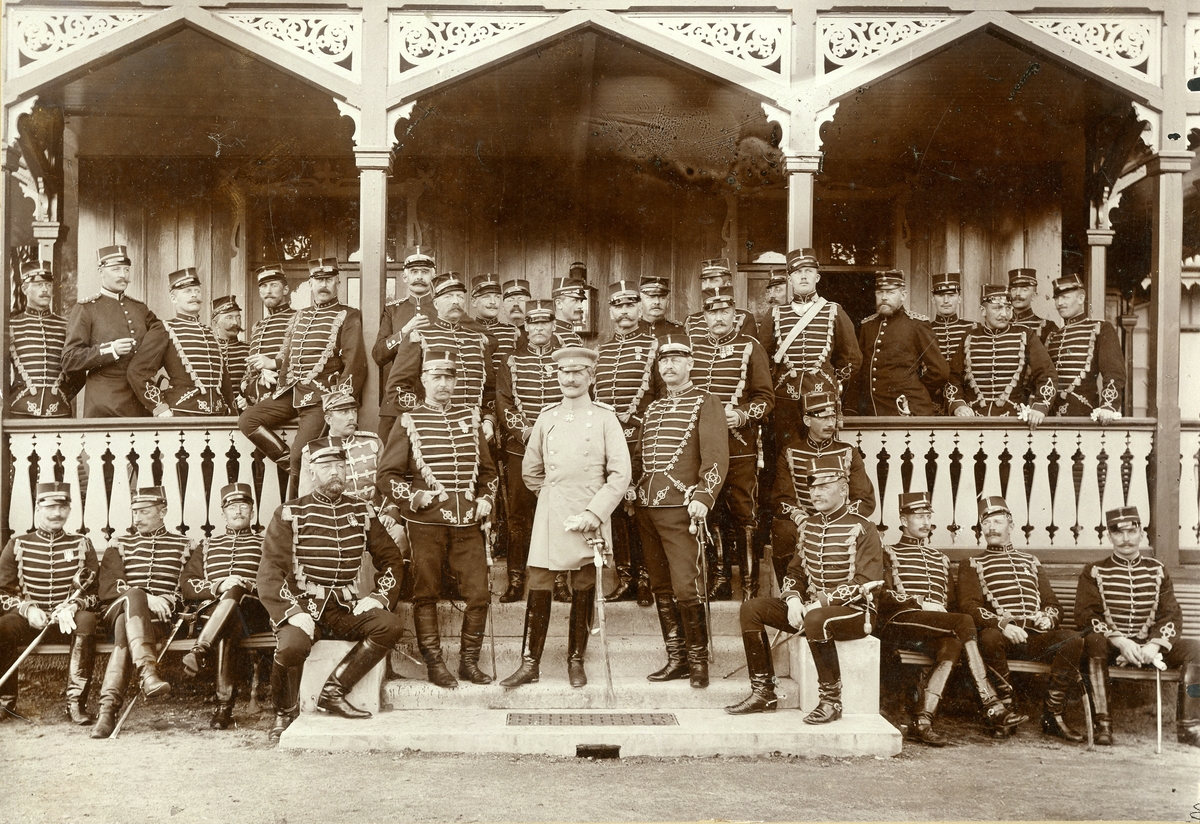 Titel: Grupporträtt av officerare vid okänt husarregemente.