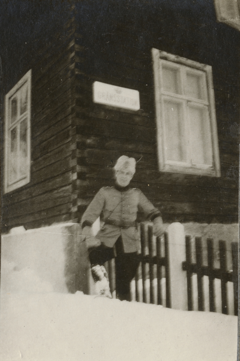 Titel: Bildtext: "Löjtnant Björn vid gränsstationen i Valsjöns by".