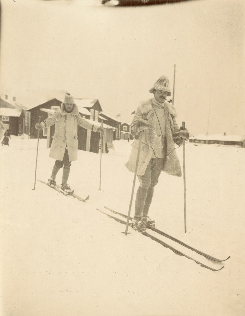 Officerare från Smålands husarregemente K 4 på skidor, vinterövning i Norrbotten omkring 1910.