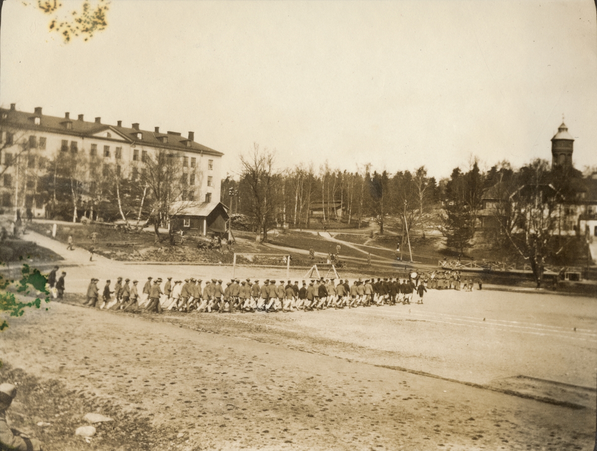 Titel: Text i fotoalbum: "1. maj 1918. Idrottsparad."