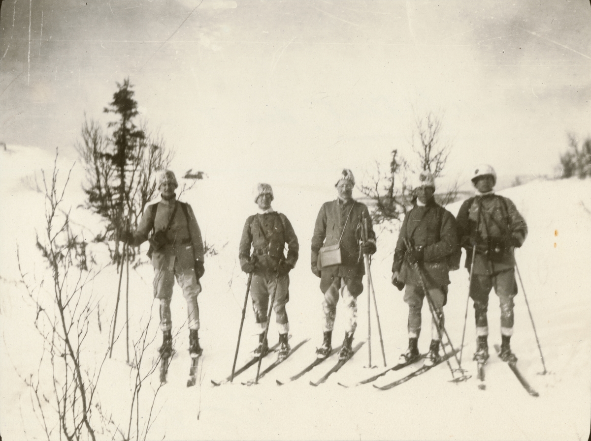 Titel: Text i fotoalbum: "Officersövningarna vid Duved 1919. Vid trädgränsen - nedåt!"