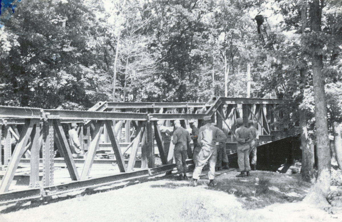 Titel: Text i fotoalbum: "Studieresa i USA mars-juni 1953. Heavy Girder Bridge, Fort Belvoir".