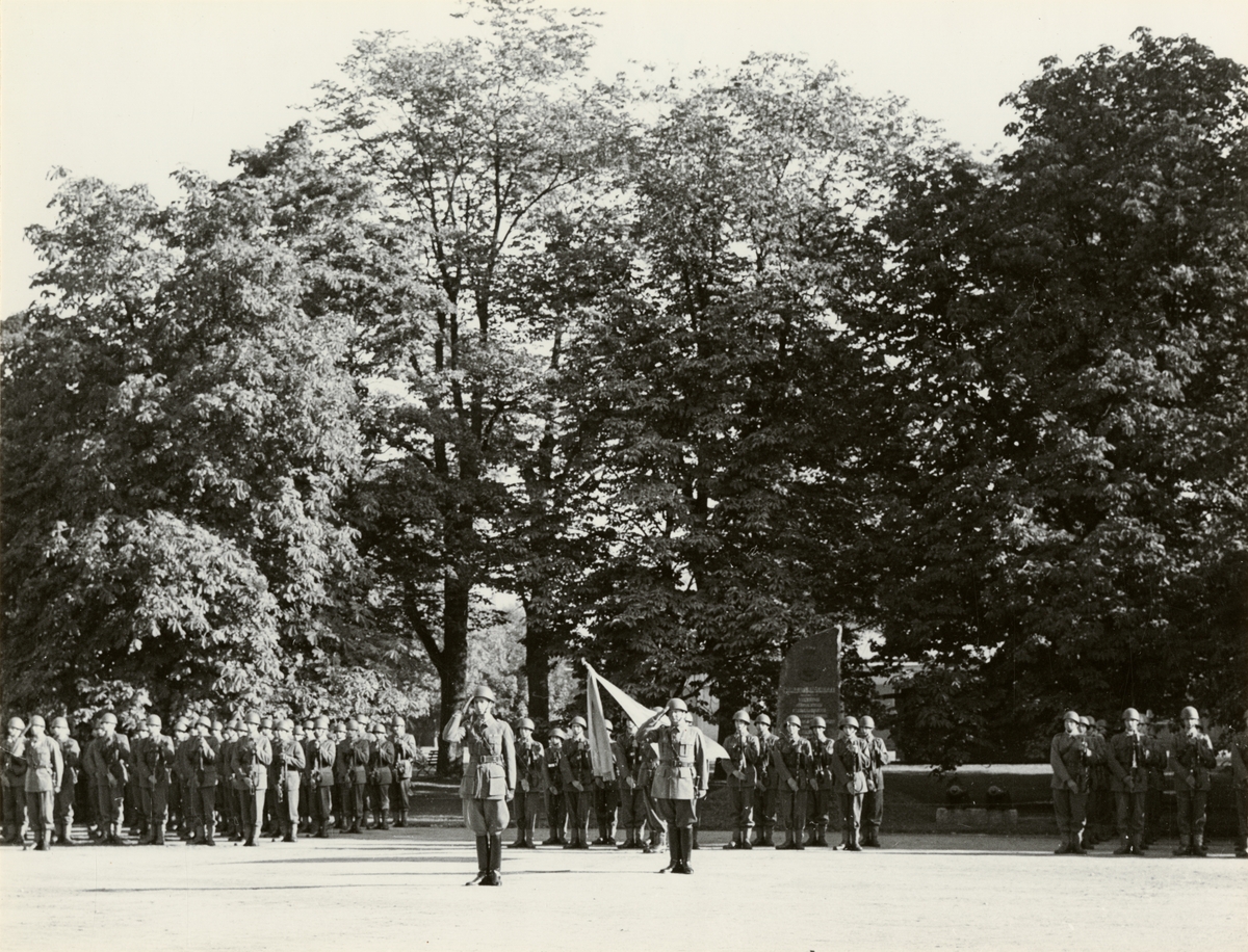 Titel: Text i fotoalbum: "Fanöverlämning 27 september 1955."