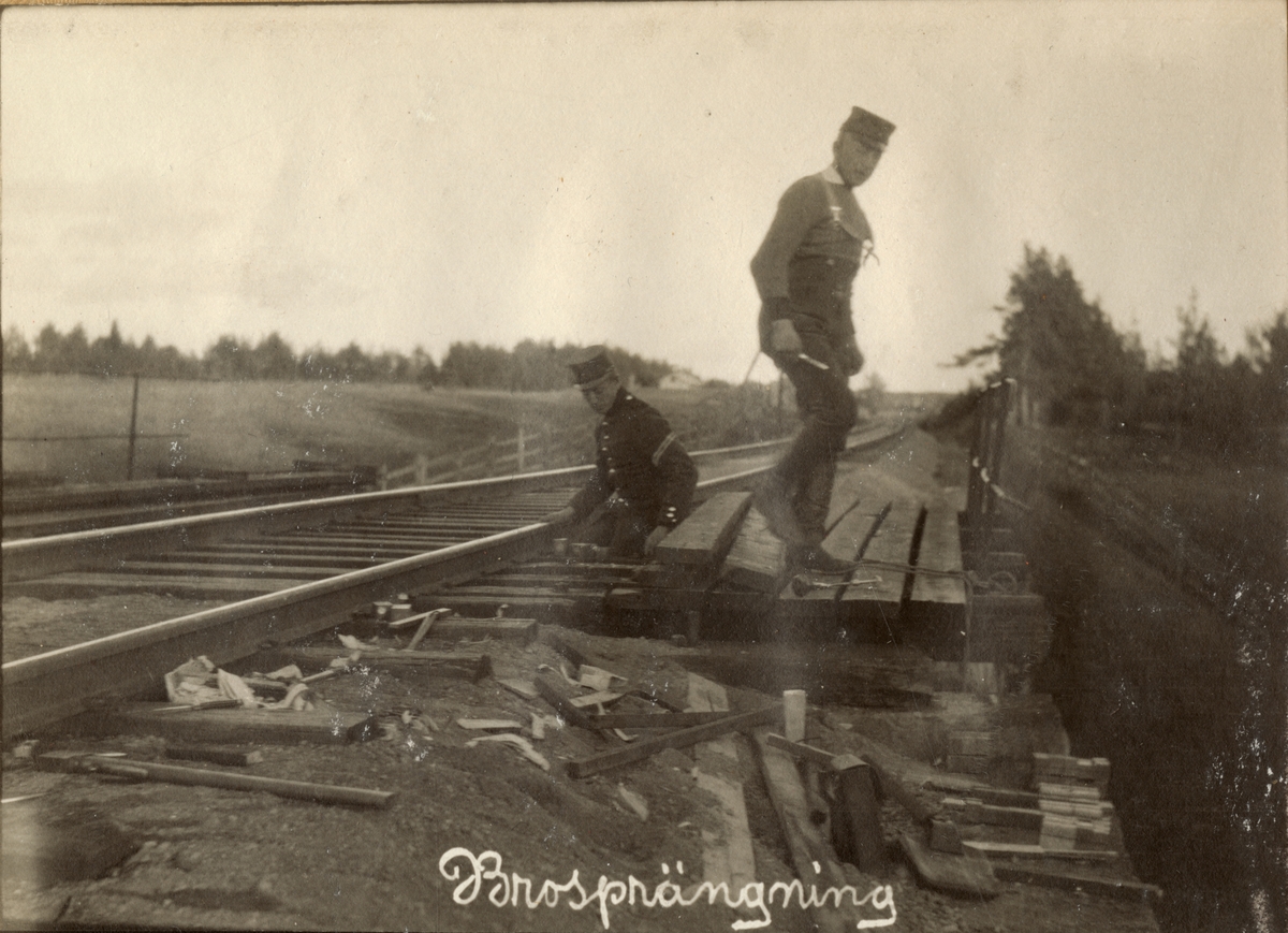 Titel: Text på bilden: "Brosprängning".