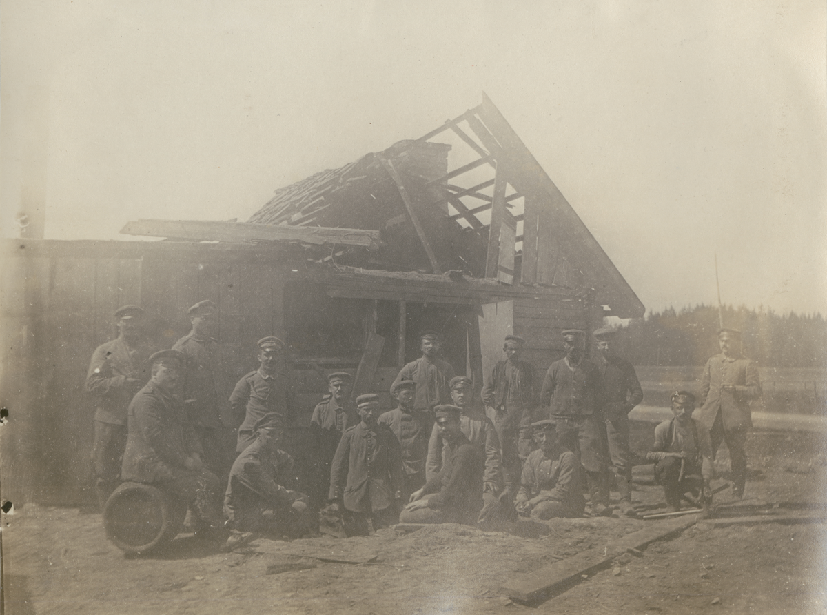Titel: Text i fotoalbum: "Ett hus repareras för att kunna bebos".
