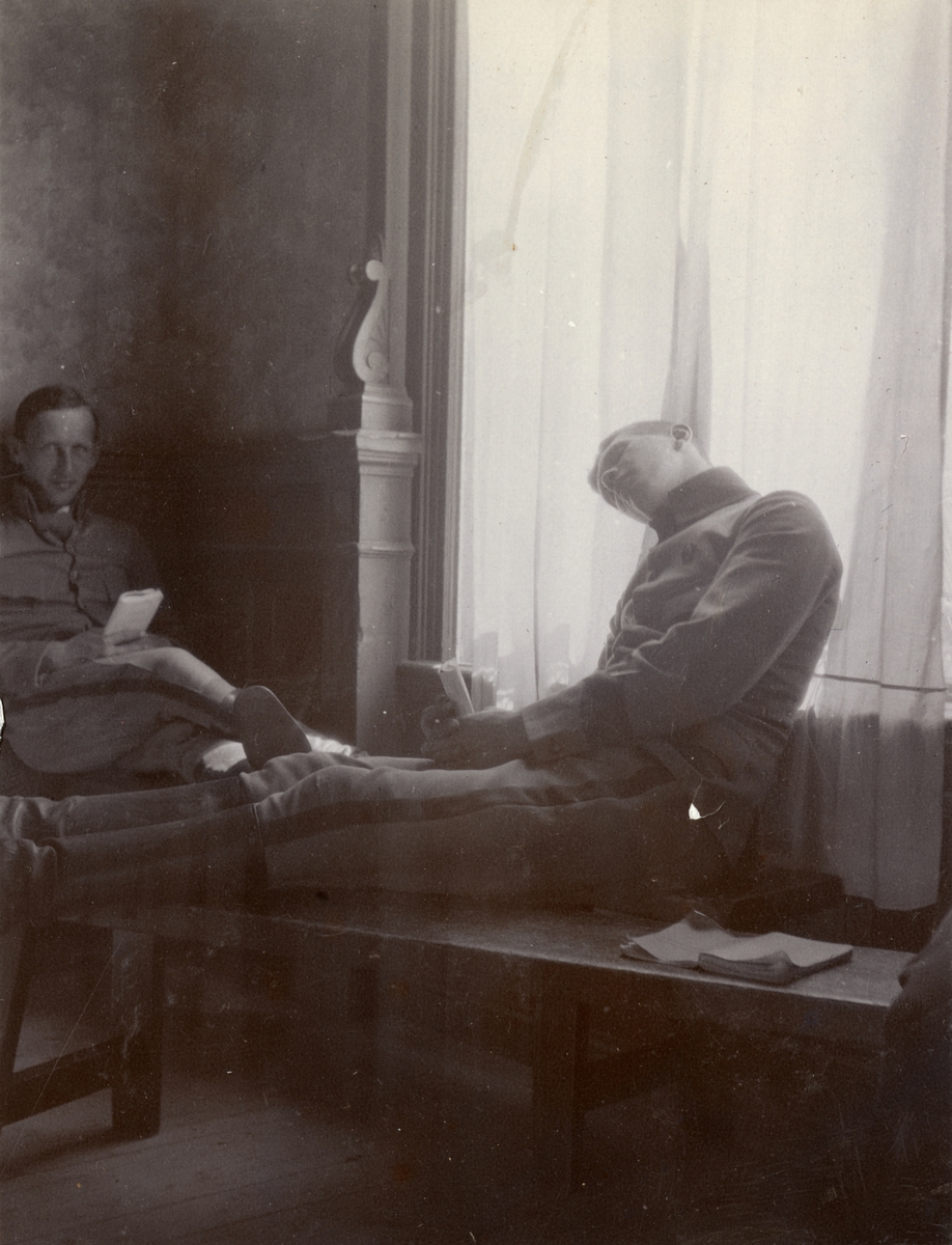 Titel: Text i fotoalbum: "Wachenfelt tror att han läser exercisregl.".