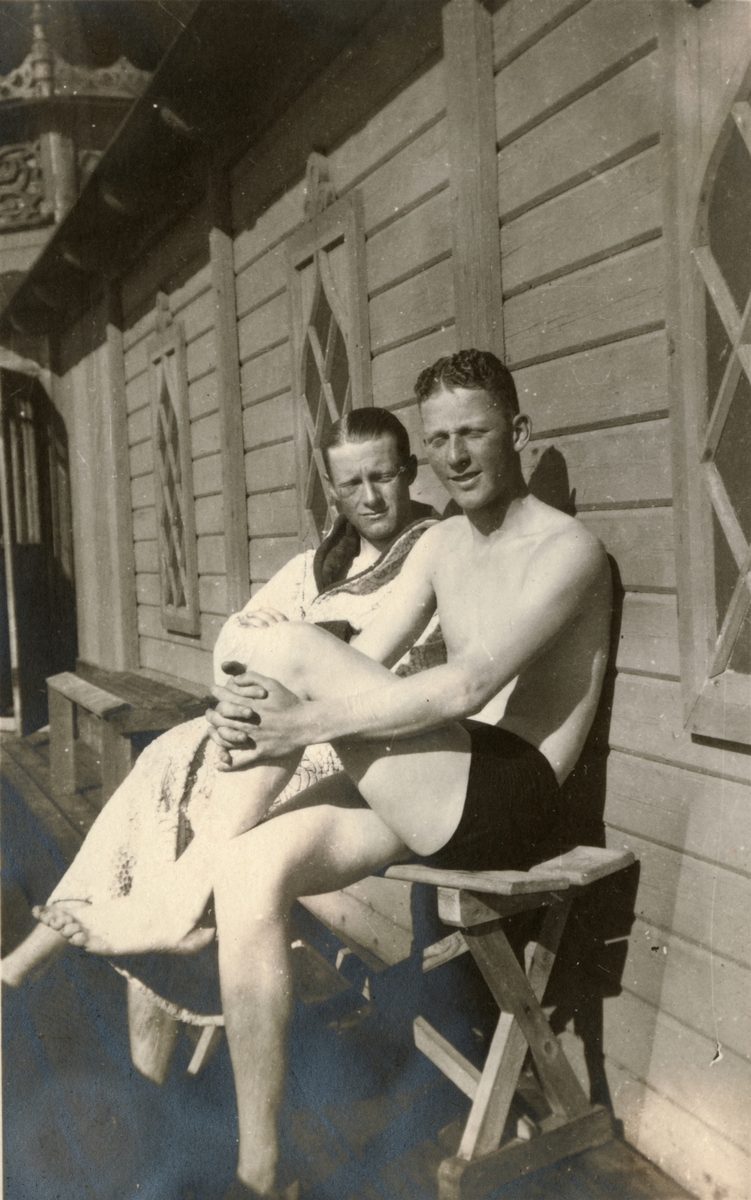 Text i fotoalbum: "Fritiden i Varberg. Kallbadhuset. Wiklund, Naeslund".
