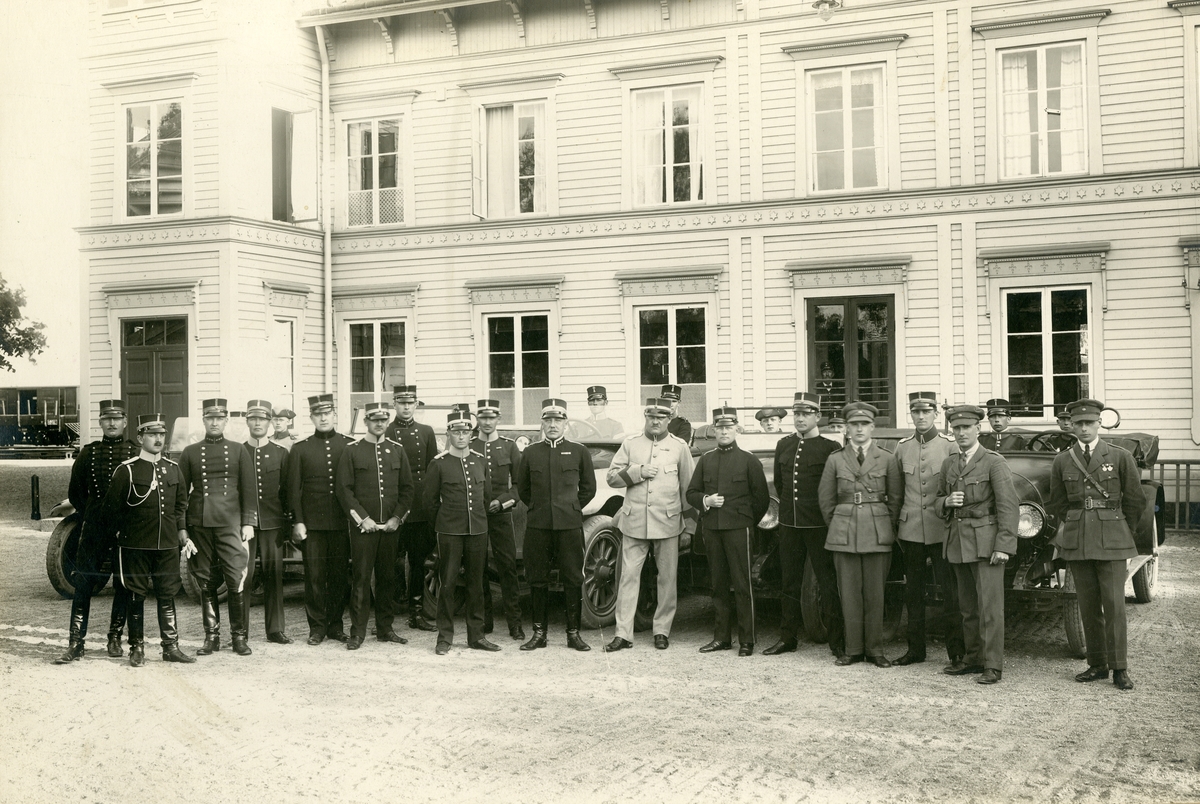 Grupporträtt av officerare i trängfältövning 1922.