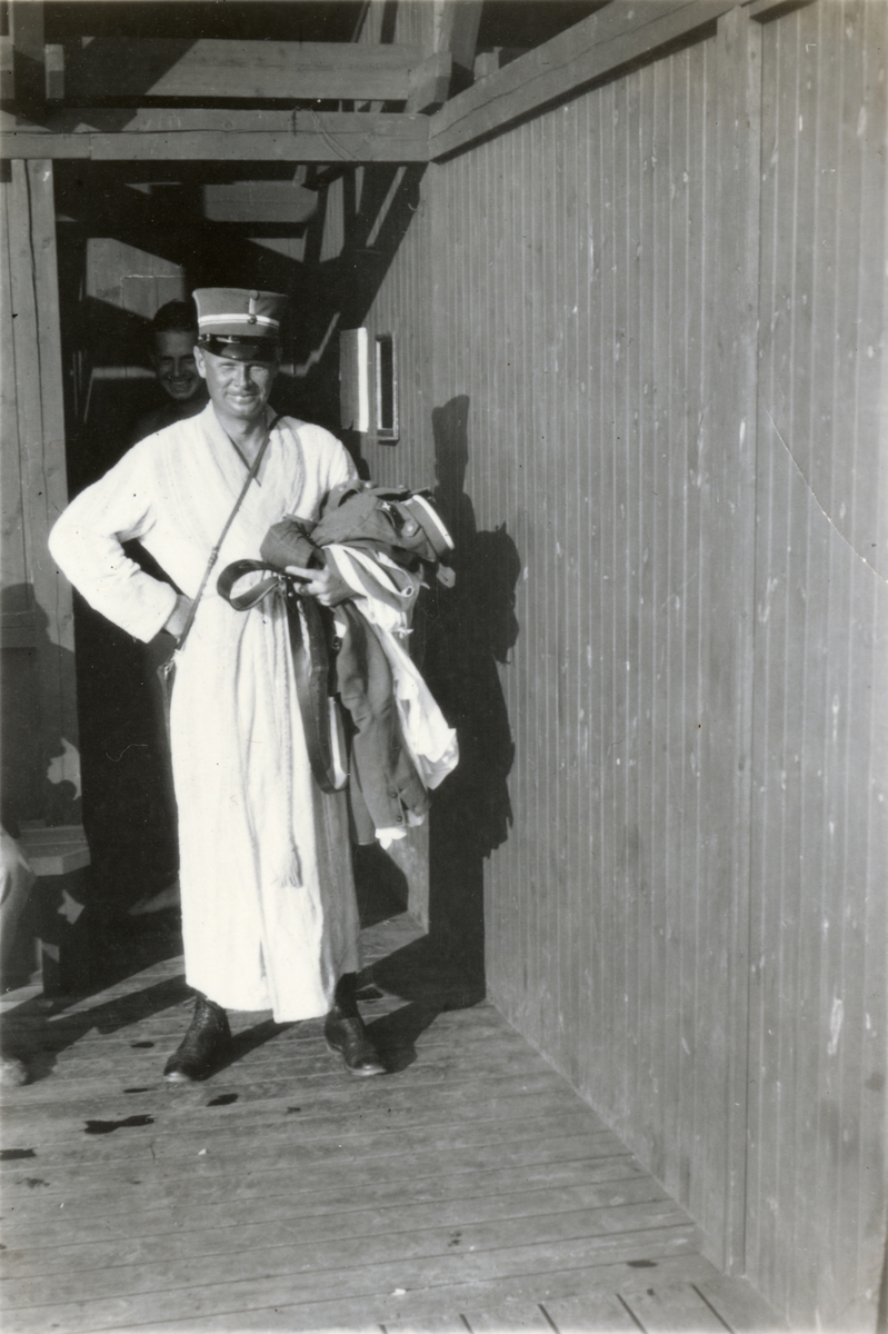 Text i fotoalbum: "AIHS hk fältkörningen sommaren 1934. Backus i Hedemodabadet".