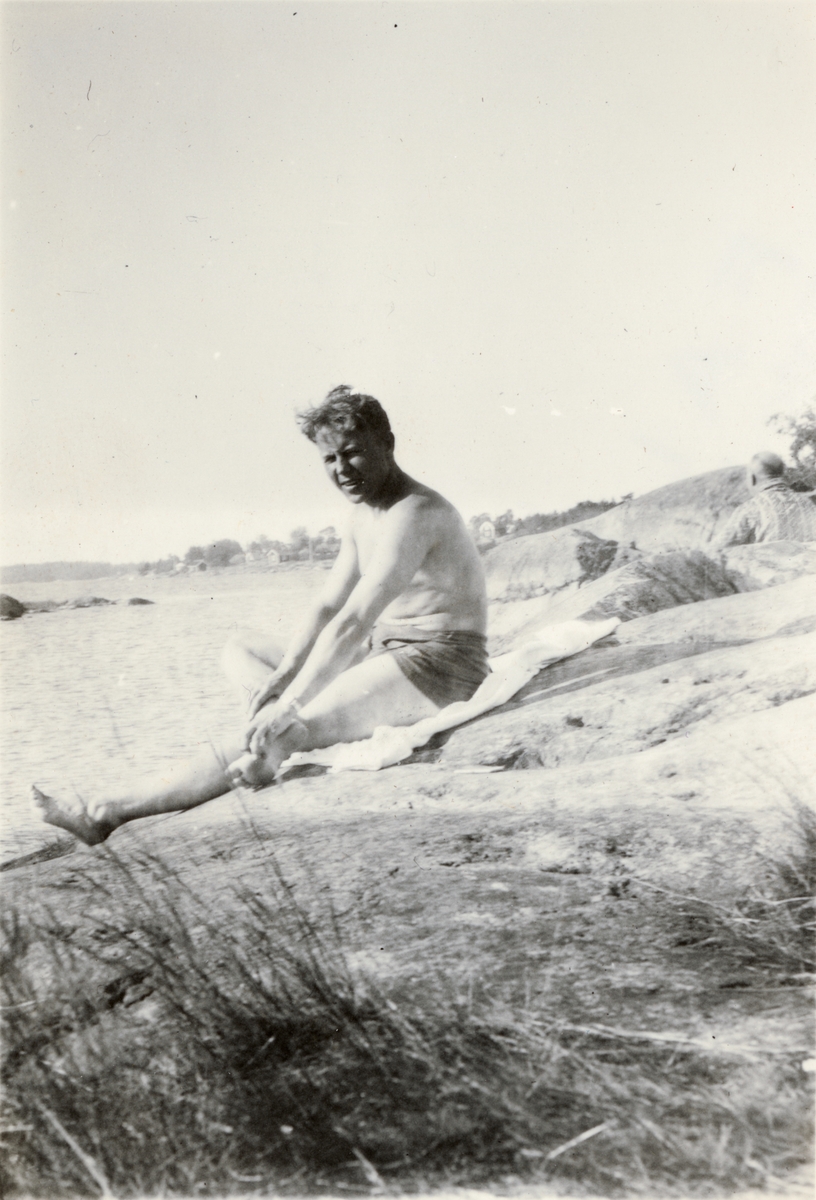 Text i fotoalbum: "AIHS hk fältkörningen sommaren 1934. Bo solbadar".