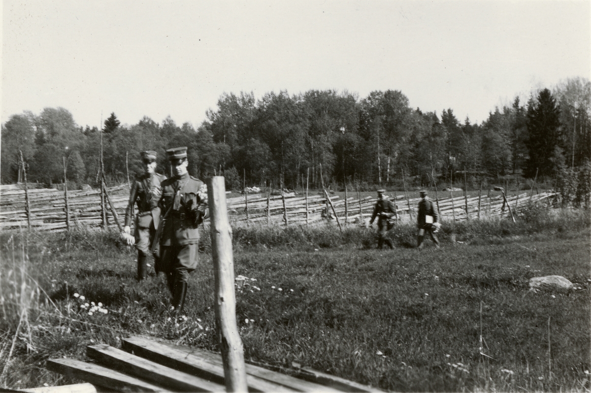 Text i fotoalbum: "Utövning i krigskonst maj 1937, kombinerad med blomplockning".