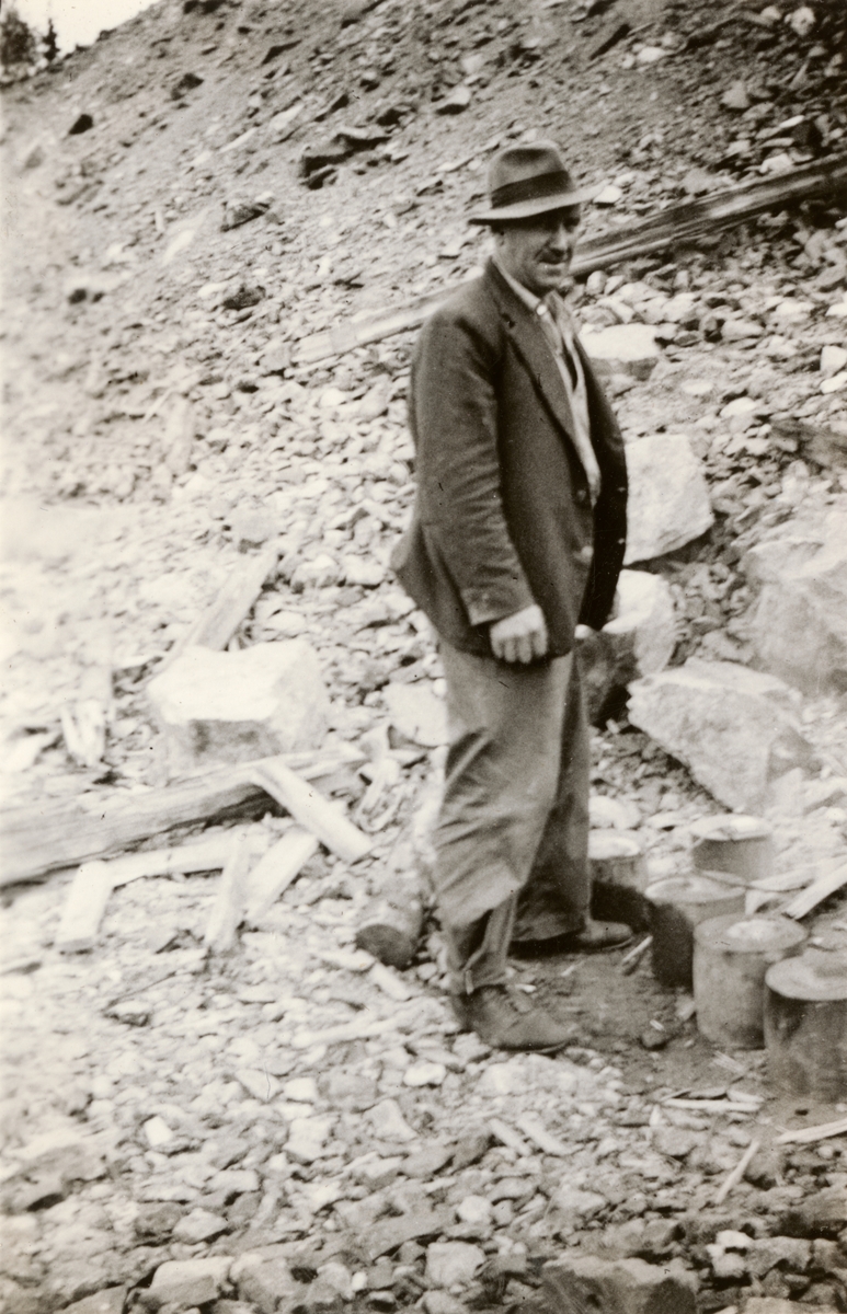 Text i fotoalbum: "3-20 juni 1937 deltog jag i en sprängkurs vid Gyttorp, där vi fick lära oss allt om sprängmedels handhavande".