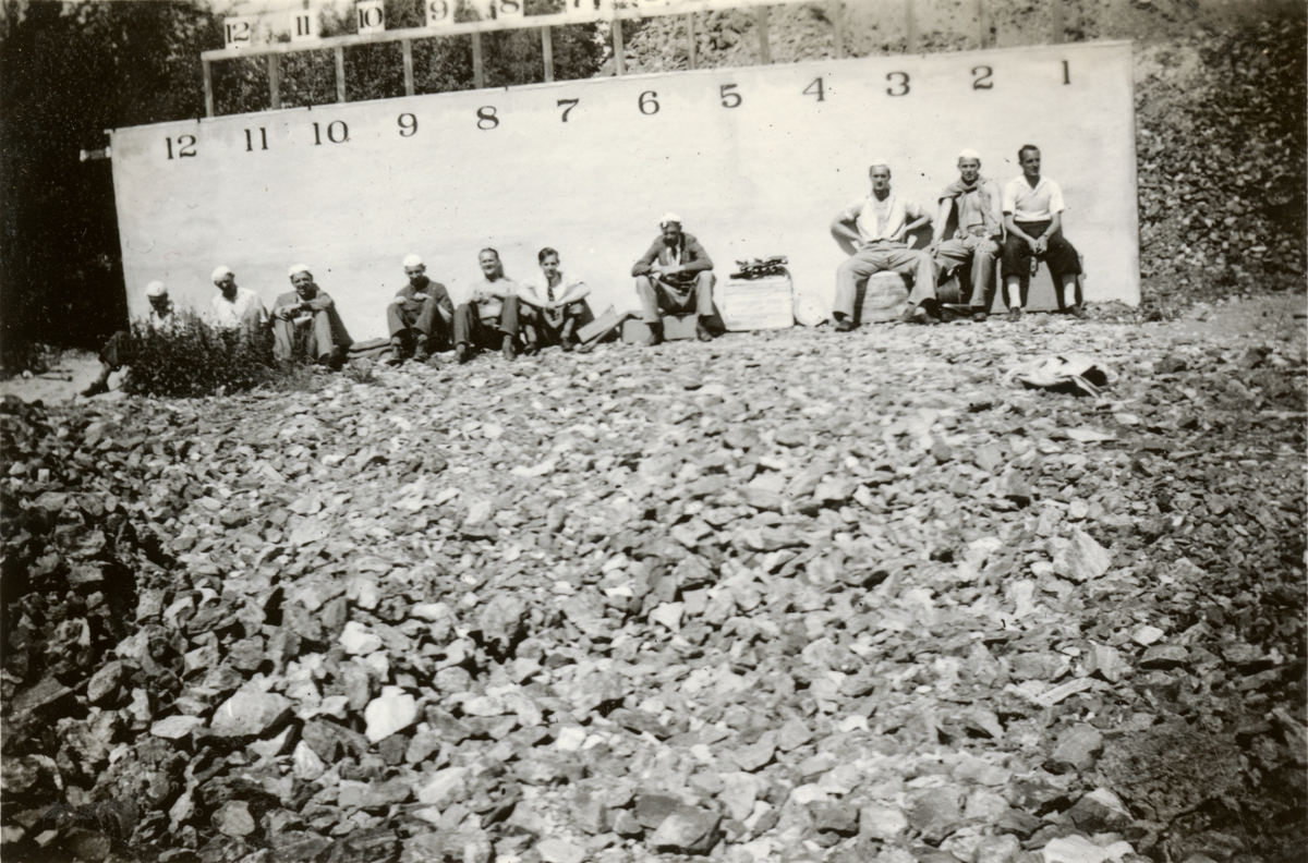 Text i fotoalbum: "3-20 juni 1937 deltog jag i en sprängkurs vid Gyttorp, där vi fick lära oss allt om sprängmedels handhavande. I väntan på skott".