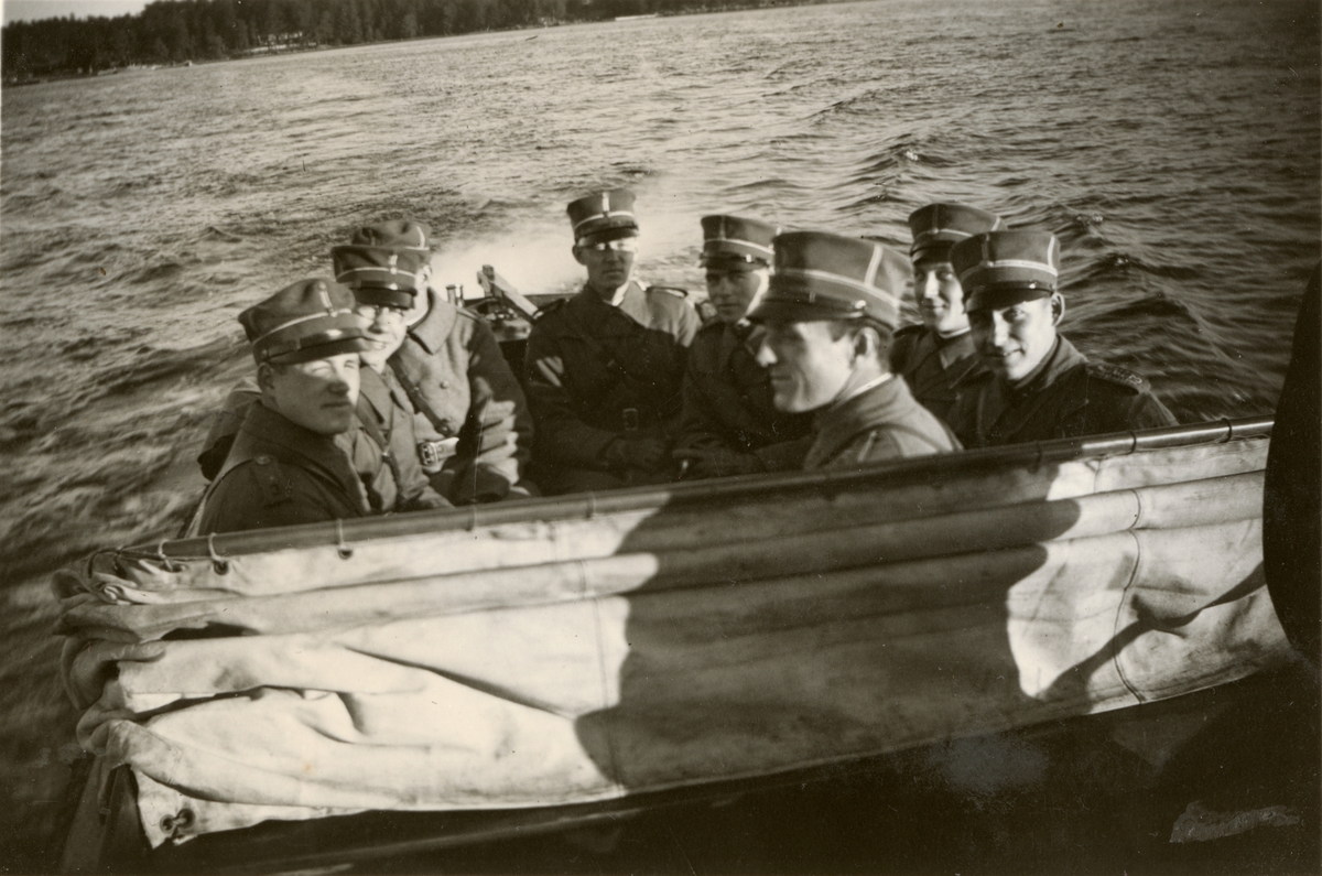 Text i fotoalbum: "En dag i oktober gjorde AIHS ett besök till Hårsfjärden och här synas vi på väg ut till "Sverige".
