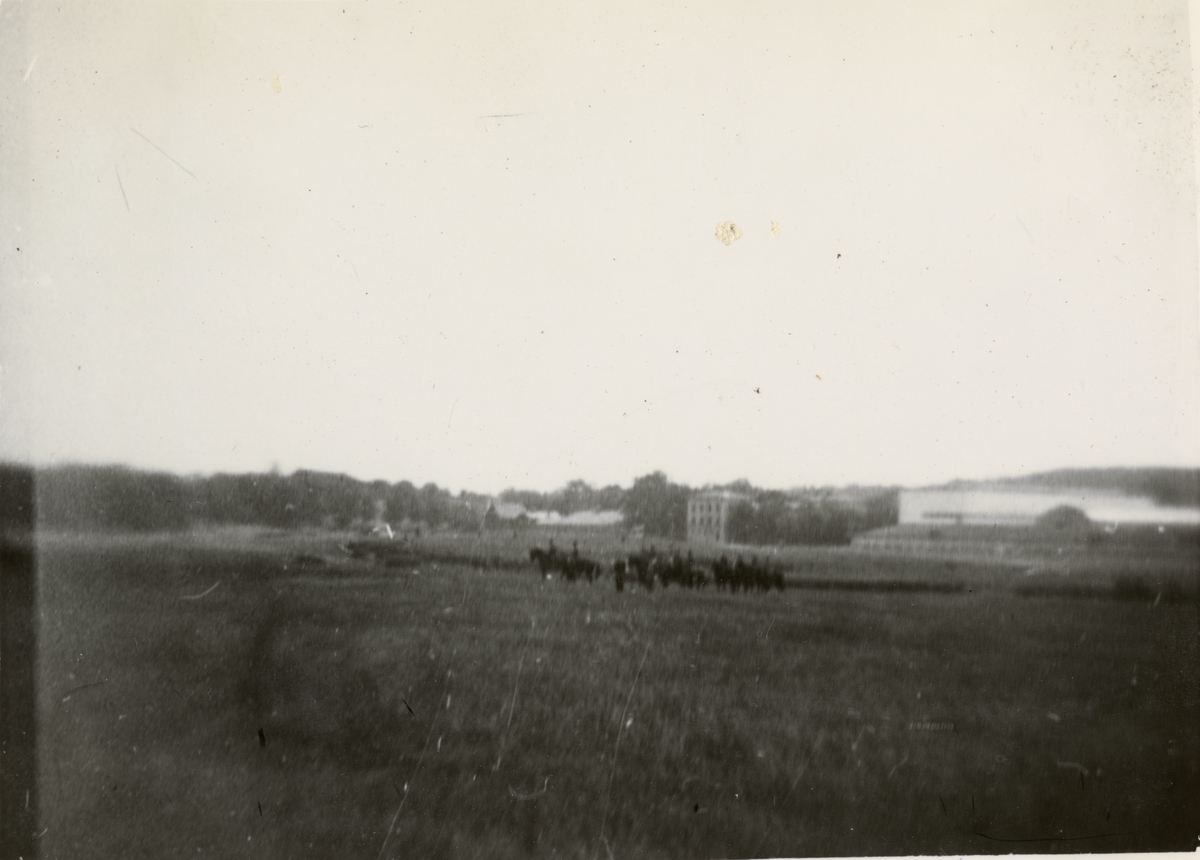 Titel: Text i fotoalbum: "Chefen för armén, general Sylvan, mottog i juli Sthmls garnison på Gärdet i närvaro av en talrik folkmassa".
