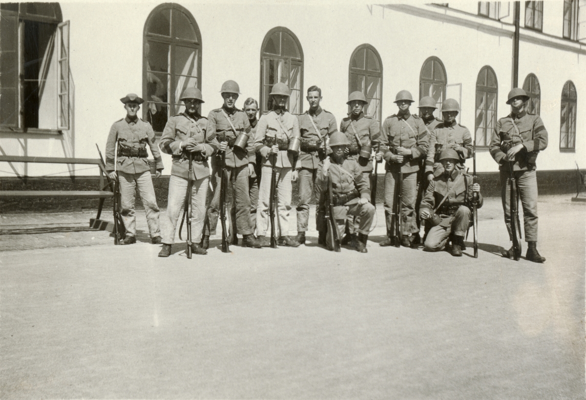 Elever på Krigsskolan Karlberg utanför Karlbergs slott, Stockholm.