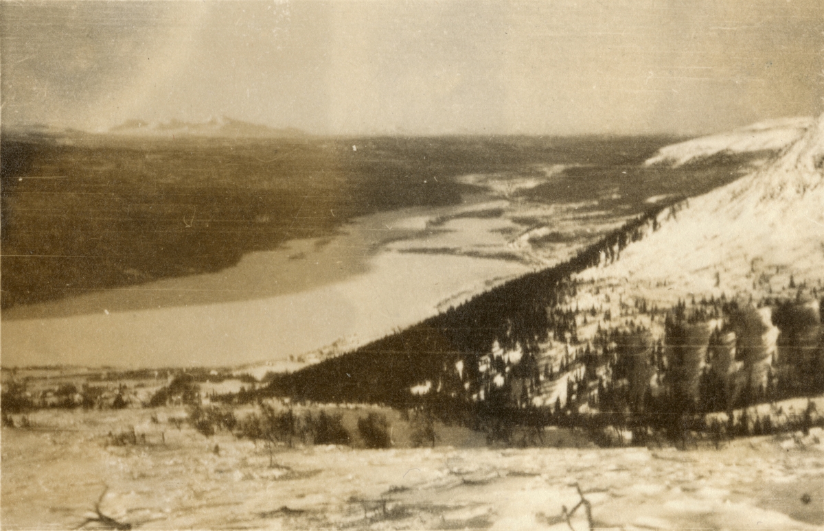 Text i fotoalbum: "Aspirantskolans vinterövningar i Björnänge febr.-mars 1926. Åredalen och Snashögarna från ryggen mellan Totten och Skutan".