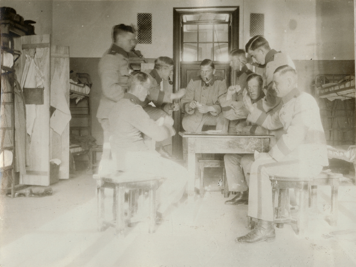 Titel: Soldater spelar kort i logementet.