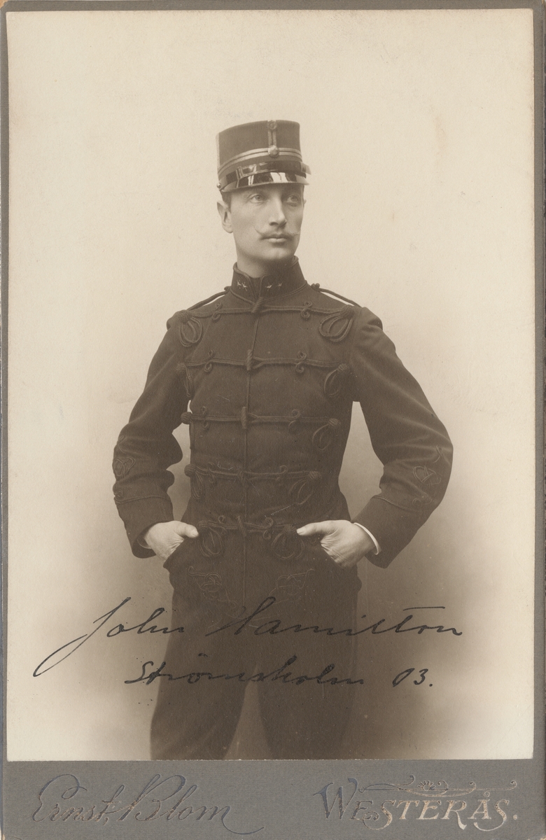 Porträtt av John Hamilton, löjtnant vid Livregementets dragoner, kommenderad till Ridskolan på Strömsholm år 1903.